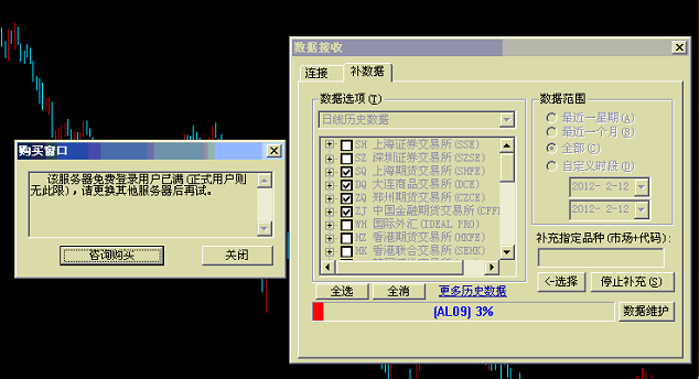 [求助]请问免费版,是不是不能补充期货的历史数据?补充数据的时候每次都出现如下问题。