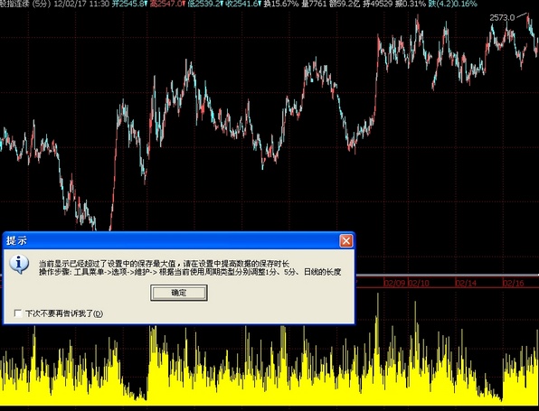 在之前24000设置时,显示中系统提示说,本地的数据存储数不够,但5分钟24000已经够多了,但5分钟K线最早只能显示到2012年1月10日.