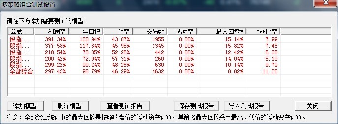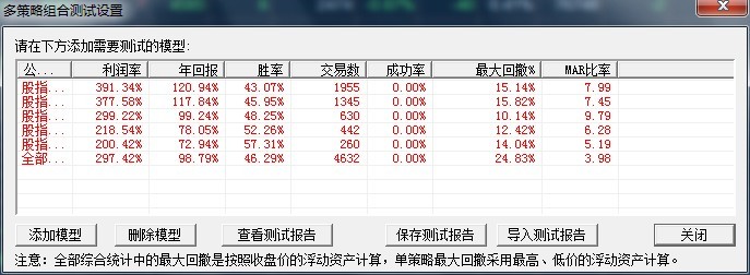 我4个模型一起测试,每个资金分配50万进行测试,但是组合后的综合回撤达到了更大的程度,感觉不可思议。