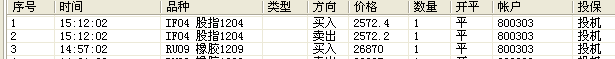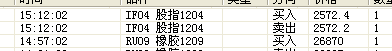2012-04-12 15:12:02.525    【回报】800303 : IF04 - 正在申报 1 价格:2572.80 平仓 买入