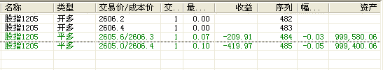 第一次平仓,收益为 2605.6-2606.3=-0.7  收益为 -210 (和金字塔的算法209.91 一致)