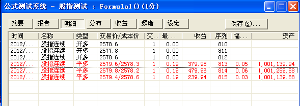资产 = 上一次资产 + (本次价格 - 上一次资产计算时价格)*300*仓位=1001139.94+(2579.8- 2579.6)*300*2=1001139.94+120=1001259.94