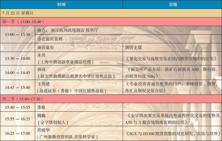 主题:全球资产对冲及量化交易论坛-杭州2012 年7月22日