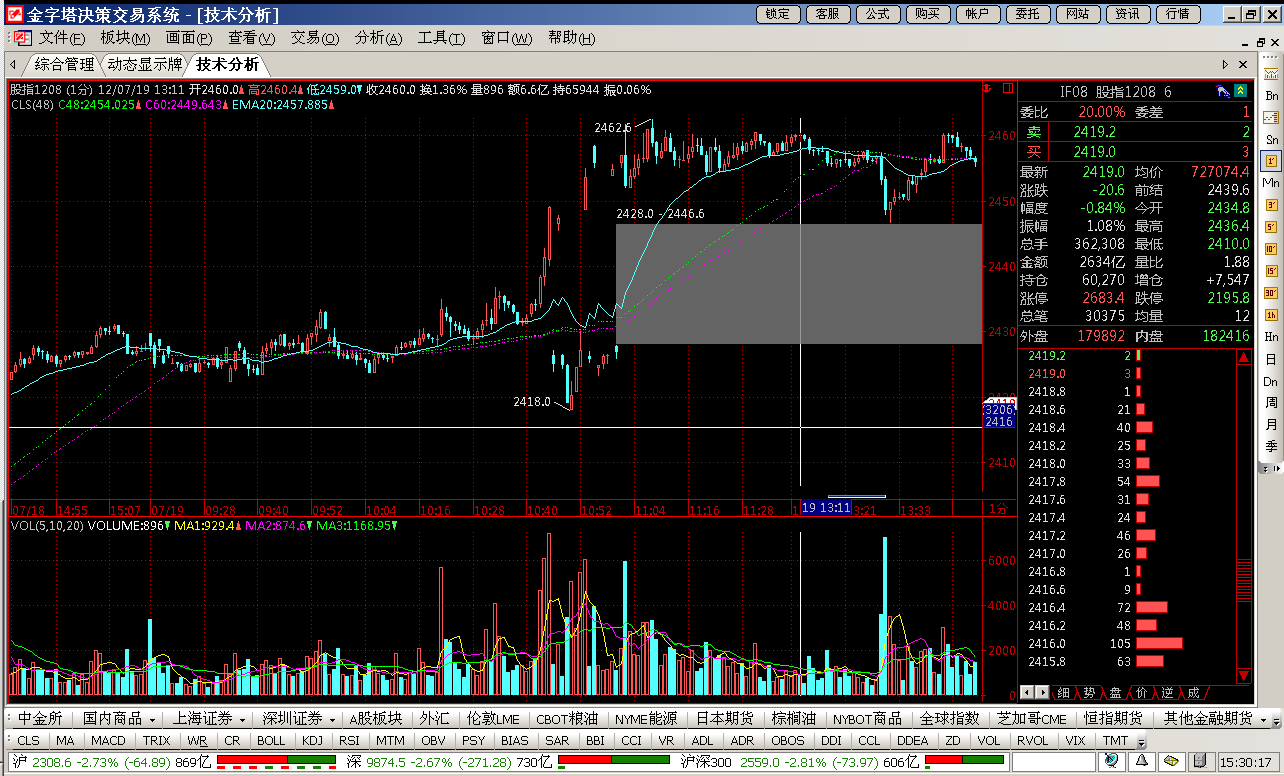 中午用补数据的方式补了1分钟最近两天的数据,结果19号10:30-11:00这个位置出了问题,可以看截图。其他品种也有问题,时间点不一。