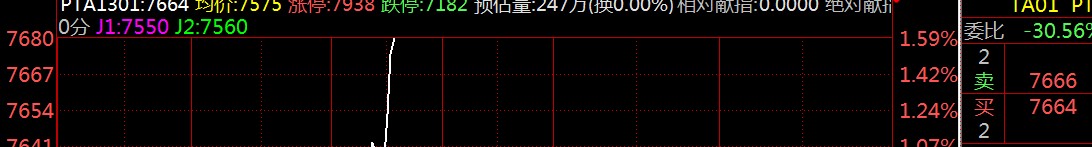 比如PTA1301,分时图的曲线指示的最新价是7600,但动态盘口的价格已经跌到7588了,盘口的价格继续变化着,而分时图的曲线不动