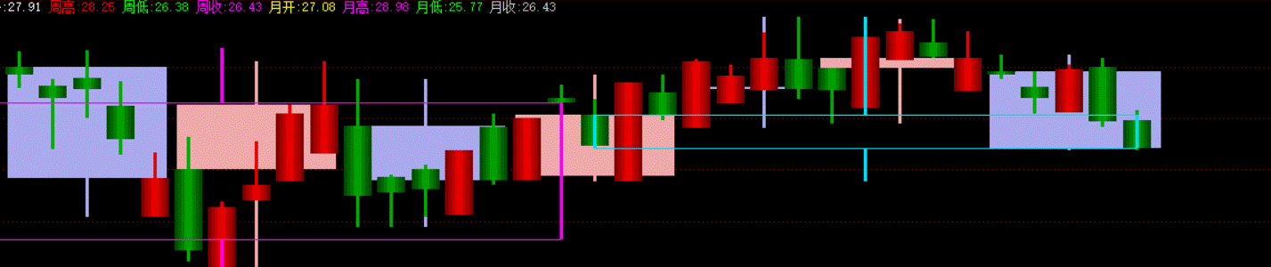 STICKLINE(Zw>0 and not(Zf) and Zj,周低,周高,1,0)COLOREEAAAA;