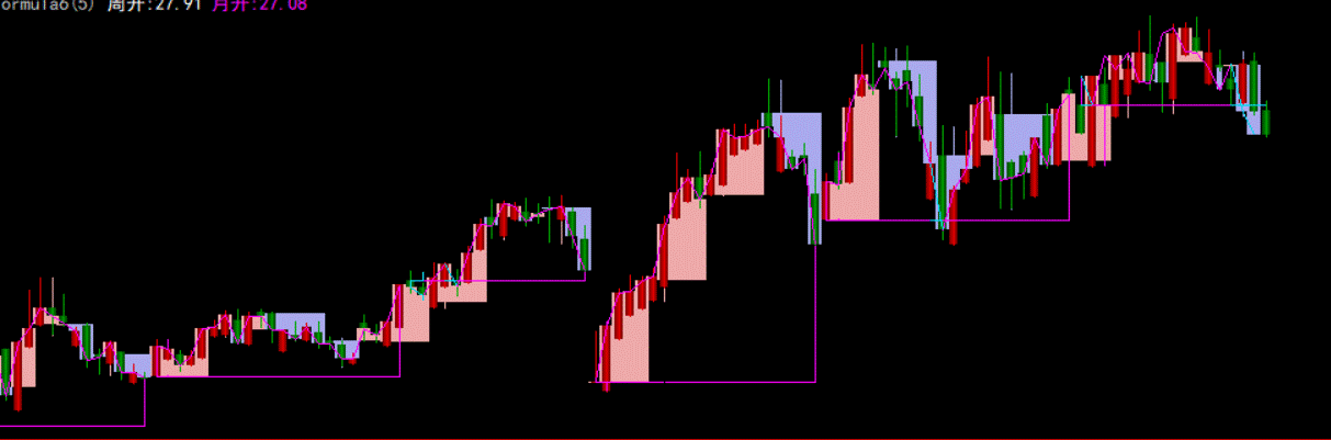 STICKLINE((refx(w=0,1) or ISLASTBAR) and f,月开,月收,1,0),COLORMAGENTA;
