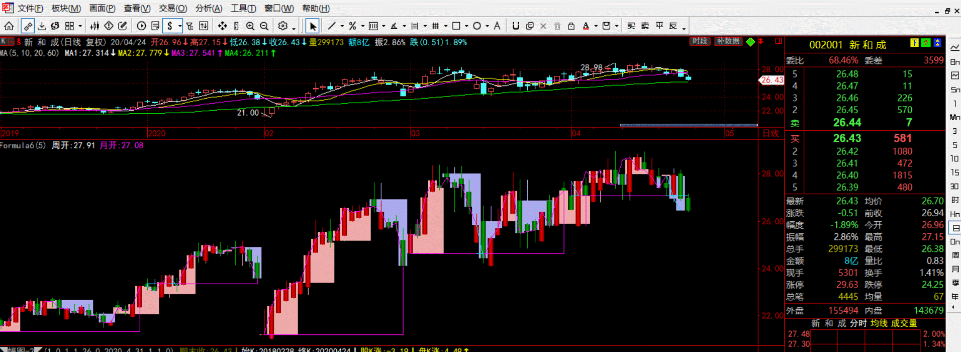 上面2张图,就是随便一只股票,代入上面公式,某股软显示正确,金字塔绘图不正确。