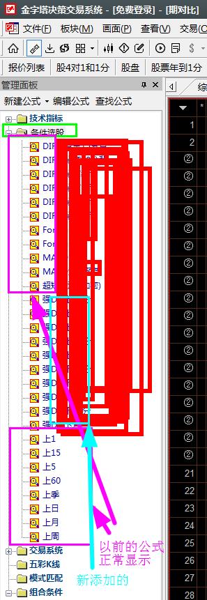 金字塔客服中心 - 专业程序化交易软件提供商金字塔软件金字塔软件问题提交 → [求助]新添加的条件选股公式怎么在组合公式里不显示呢?