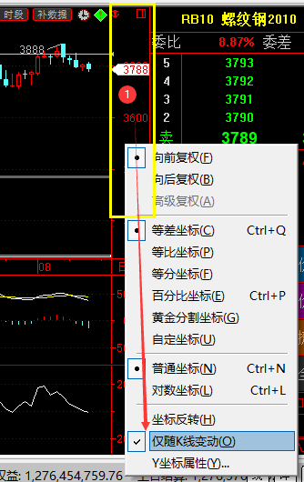 自己在k线图价格坐标轴上右键。勾选仅随k线变动