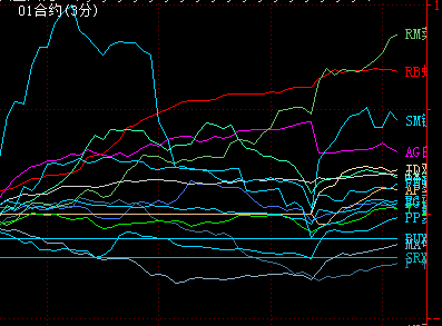 我们根据KDJ的K值由大到小排序,品种为CU,RU,M,CF,IF