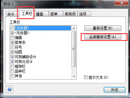 请问,我设置了自定义工具栏,但是不知拖到哪里去了,或者拖到了一个位置,怎么样全部还原初始状态呢
