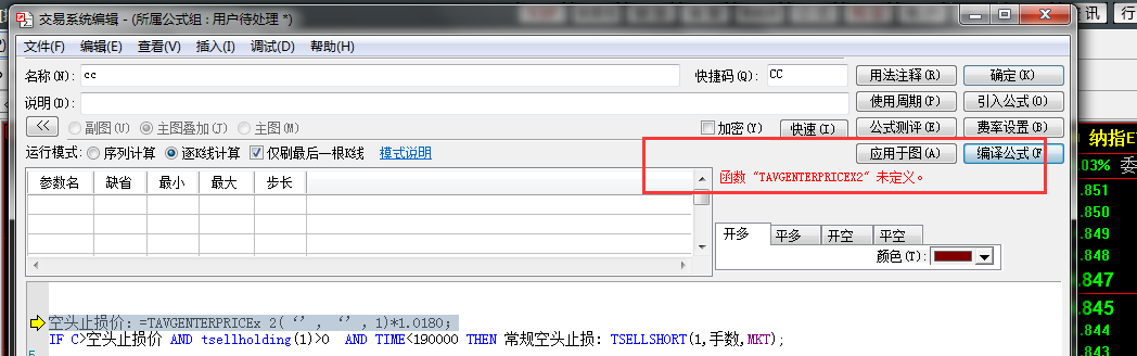 空头止损价:=TAVGENTERPRICEx 2(‘’,‘’,1)*1.0180;