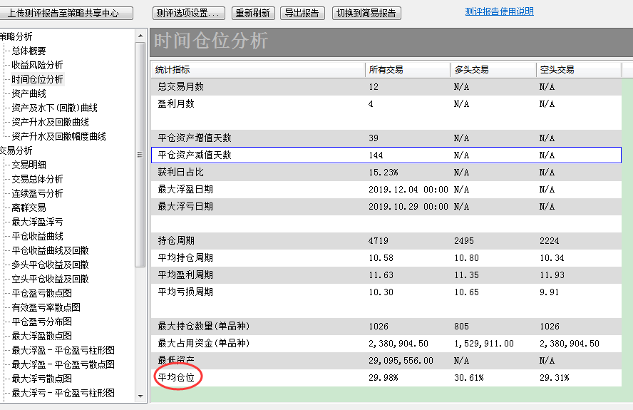 没有最高的,这里的平均仓位是指对每根K线取样计算持仓占用的资金/资产的百分比平均值