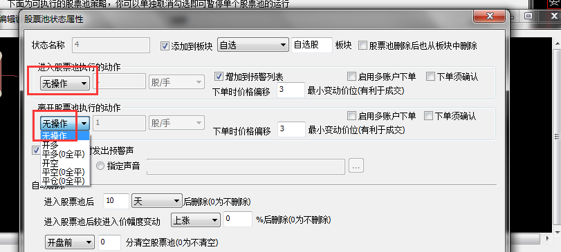 你截图看下你进入股票池和离开股票池的操作这里是怎么设置的呢。看下是不是设置有误。