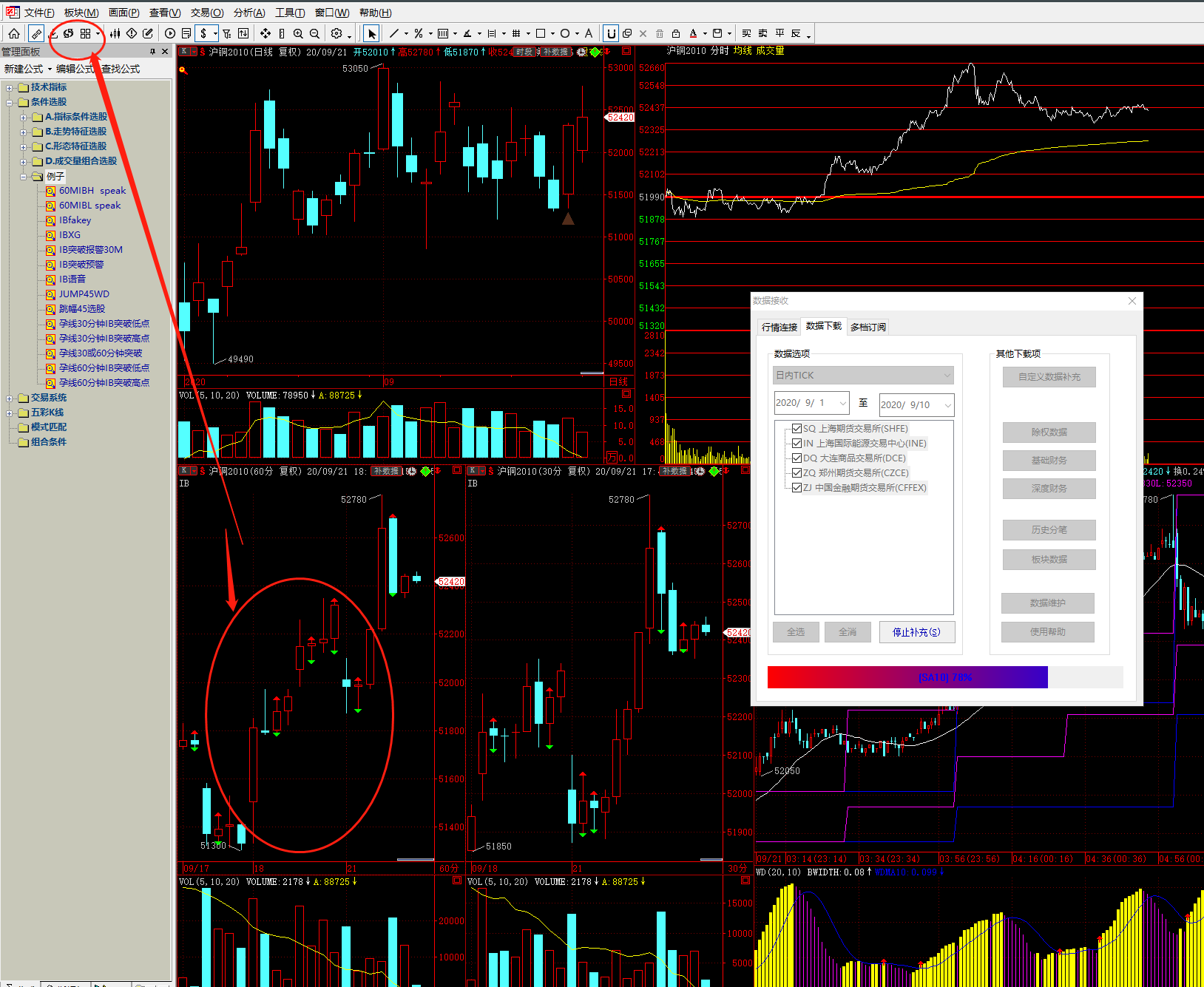 请问一下,我把日线,一分钟,五分钟 TICK,还有5秒的数据全都被了一遍, 为何还有合约调出来后,数据不完整比如1小时, 还需要按刷数数据按钮,才会显示完整。。