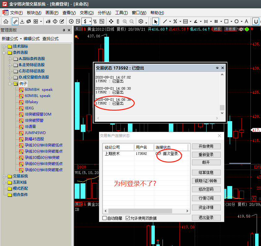 新注册的模拟账号,显示 首次登录,但一会儿就退出了,交易不了,?什么原因?