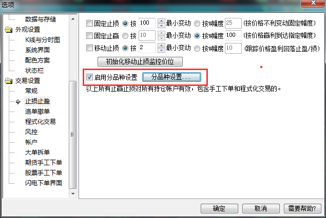 还有止损和止赢这些默认的点数,可不可以按合约提前设置好?