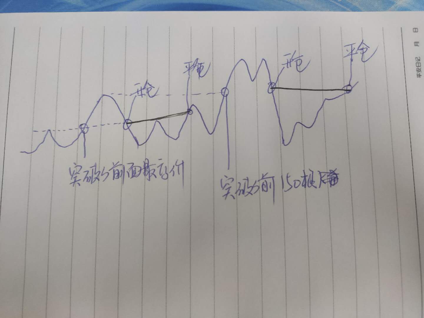 开仓是当前价格突破前面记录的这根k线的最低价,平仓条件暂且是保本