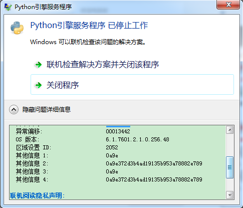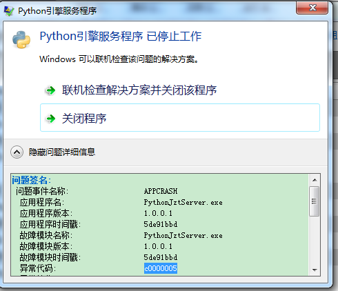 phthon引擎服务已停止工作 错误  发帖心情 Post By:2020/10/20 21:31:47    Post IP:120.235.52.138[只看该作者]