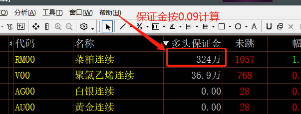 比如菜粕,我在合约信息设置里面设置的多头保证金比例为0.09,使用上期模拟账号下单,股票池实际成交是按5%的保证金比例来计算和成交的。