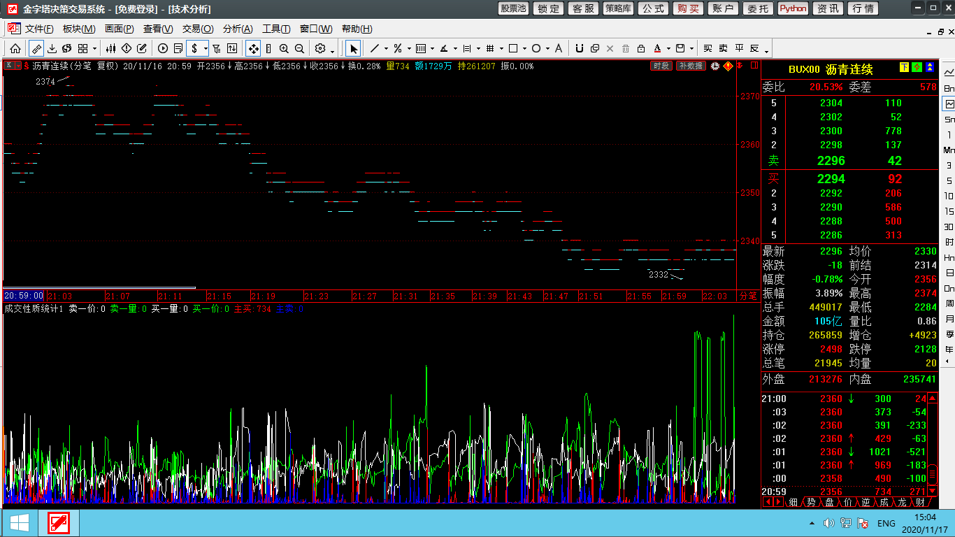 用 上面的几个函数测了下 20:59 时候的情况  ,发现  委买 卖 价 量 都为零  ,也就是 读不到    但 主买  主卖 会有