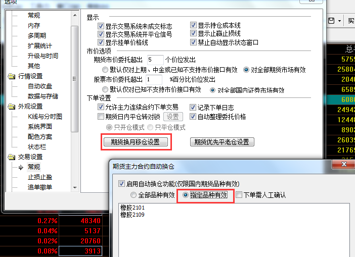 持仓栏除了鸡蛋合约,其他品种都换主力合约是吧?  设置一下换月合约即可:下单 》 交易设置中