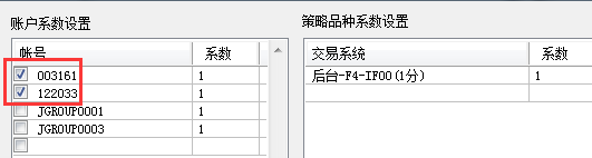 只要勾选需要执行的账户就行了,不挂策略的不要勾,系数填1