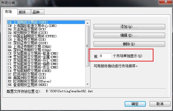工具 》 市场与板块 ,下图位置改小,也可以把不需要的市场给删了