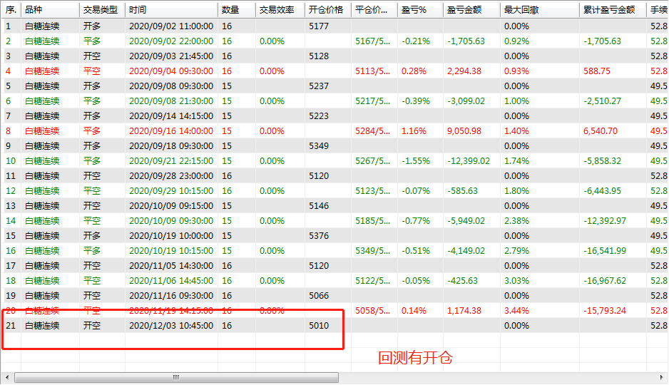 2.关键问题是回测中有开仓,实际模拟中无开仓的问题。