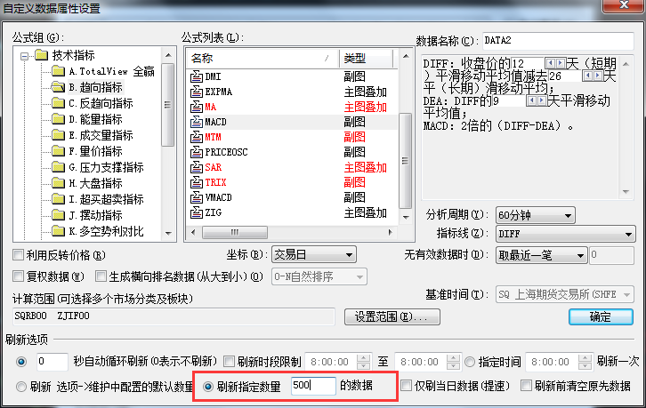 属性设置中可以刷新指定数量的K线,按需设置即可