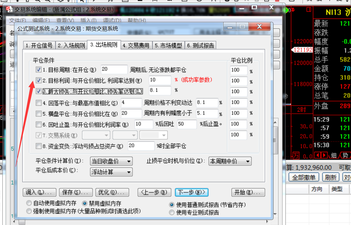在进行回测时,有个平仓条件的设置,请问如果在这个平仓条件下面这里打钩了,如果满足了这个条件,但没有满足策略代码中的平仓条件,是否也会帮我自动平仓掉???