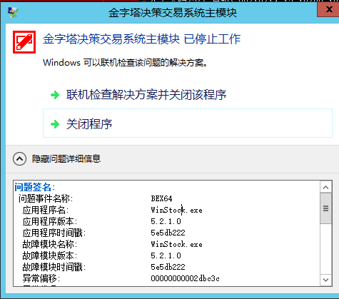 金字塔早上弹出主模块已停止工作,显示问题事件名称是BEX64.应用版本5.2.1.0;