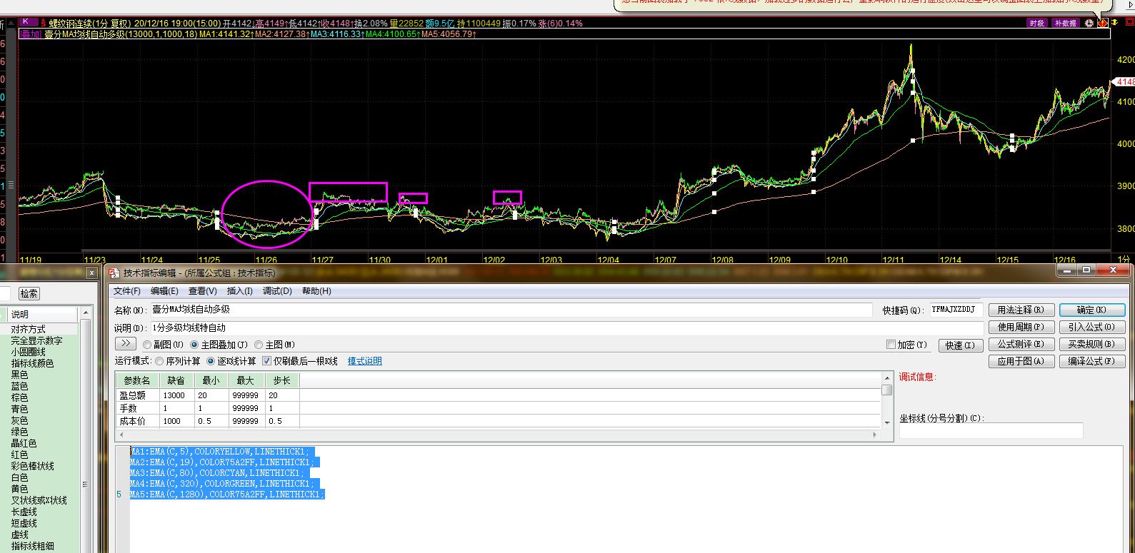 1如图所示,均线值跟K线错位,,公式三个模式选项(副图,主图叠加,主图);选中主图叠加和主图都无效,,正确的应该跟K线紧密贴合才对。。