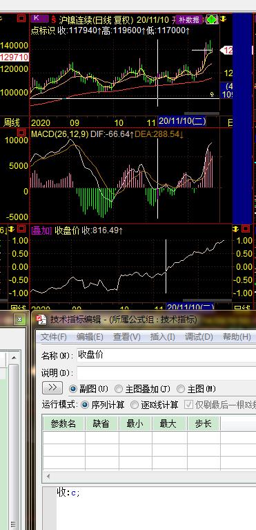 1、 KLINE(O,H,L,C,0); 这里的参数填0表示和主图K线一致,填1的话表示不影响坐标高低值了,不和K线主图对齐了,这里填0就行了。