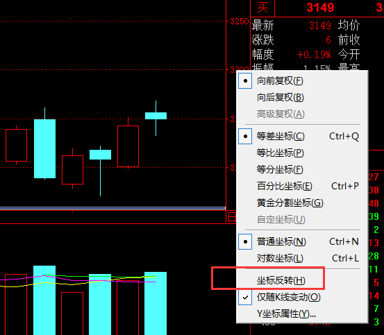 将K线以现在的特征反转过来显示,反转前的最高价也就是反转后的最低价。 以图表的最高价为基准反转后按比例计算前后K线的涨跌。