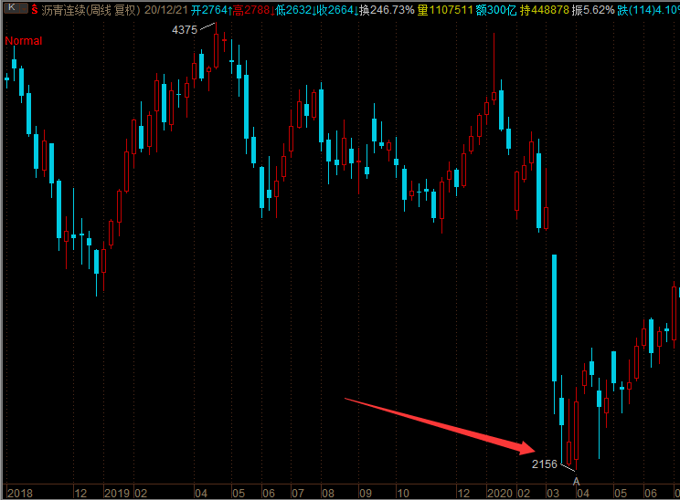 沥青连续合约上面, 金字塔这里最低是2156,但是文华财经和博易大师为什么这里都是1758呢?