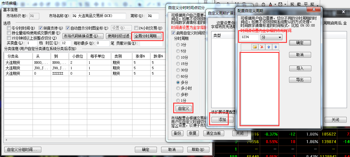 可以自定义设置时段切分,工具 》市场与板块 》 选择对应市场 》 编辑 》 按下图设置自定义时间,需按金字塔时间设置即可
