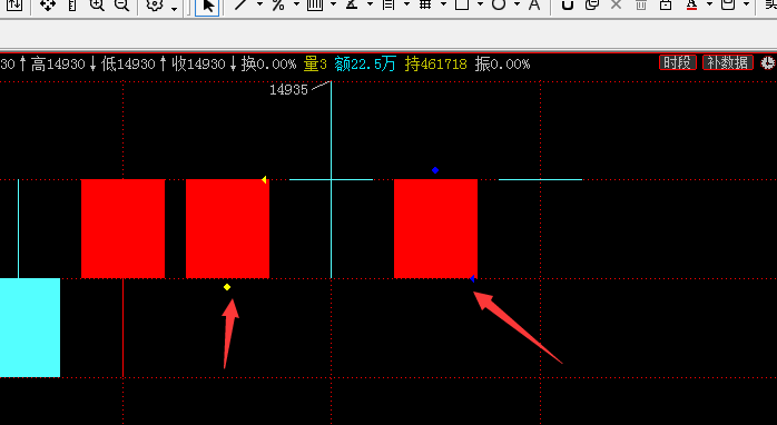 2、客户端的K线图上也会有下单标识显示,菱形标记位置,三角形标记价格;