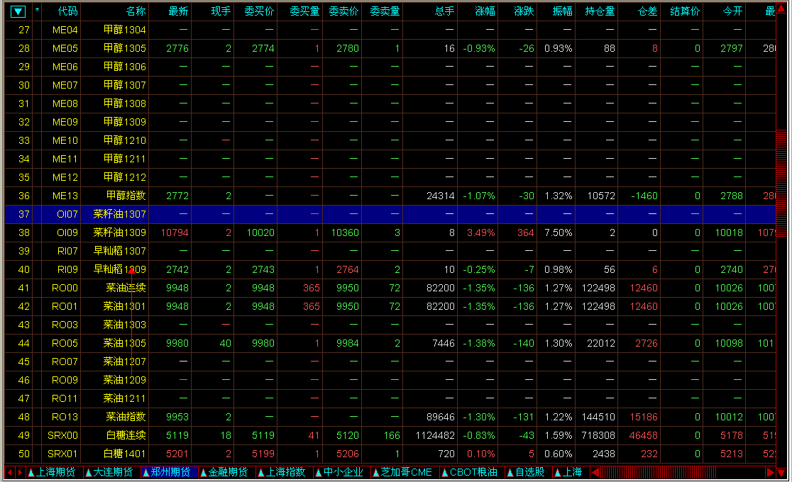 主题:郑州期货缺少1309的强麦。早籼稻。菜籽油这三个品种