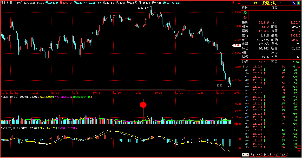 如图所示股指指数15分钟的部分数据不准,如图红点量柱的量明显不对,如何更正?。股指指数不准影响程序化操作看指数做合约。