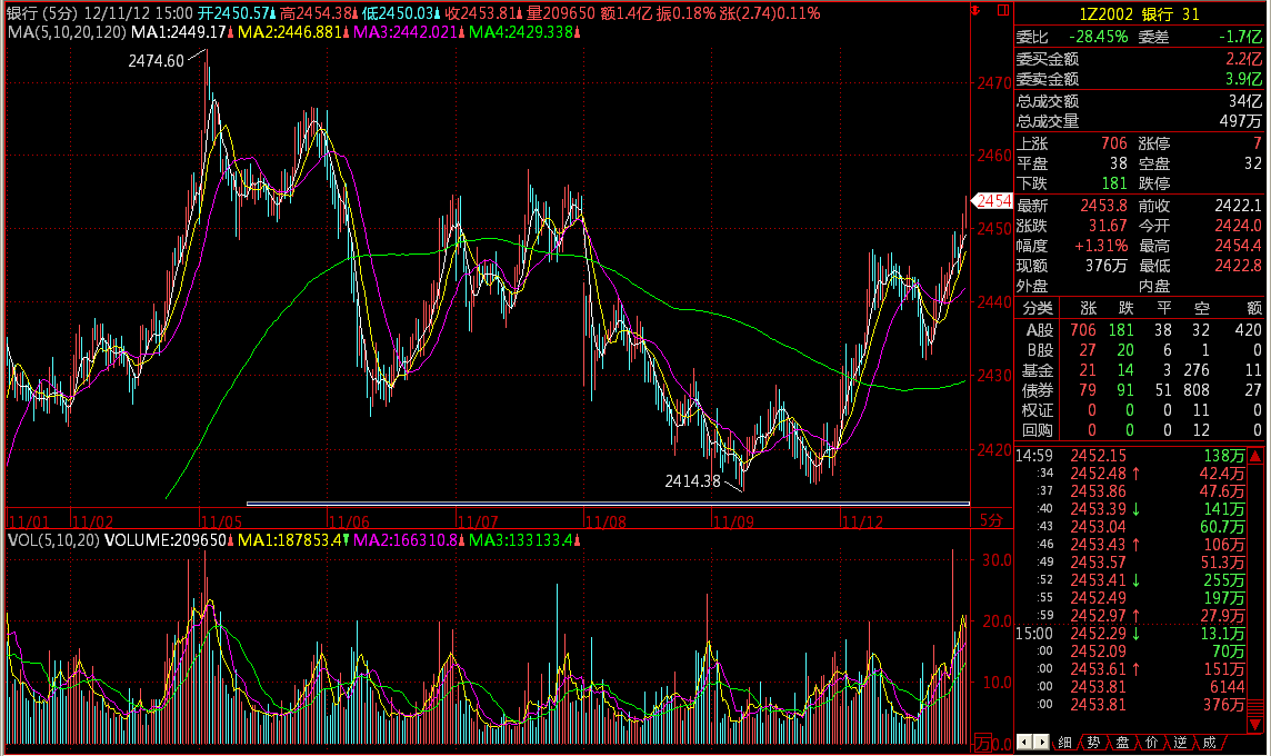 银行的5分钟线只显示1天的?  发帖心情 Post By:2012/11/12 12:44:07 [只看该作者]