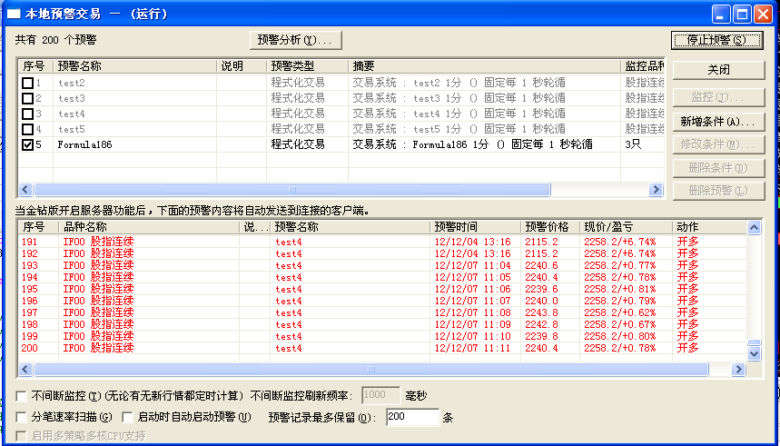 那么就是最直接的开17个预警,每个合约一一对应