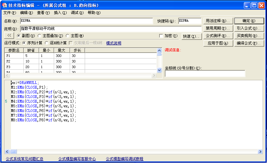 例如:EMA(CLOSE,30)表示求30日指数平滑均价