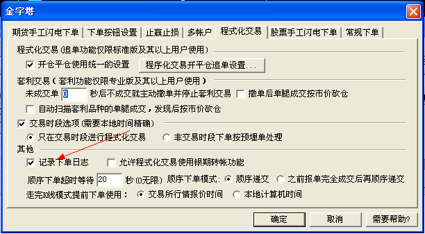 首先要在交易  下单设置里面进行勾选,不勾选没有日志