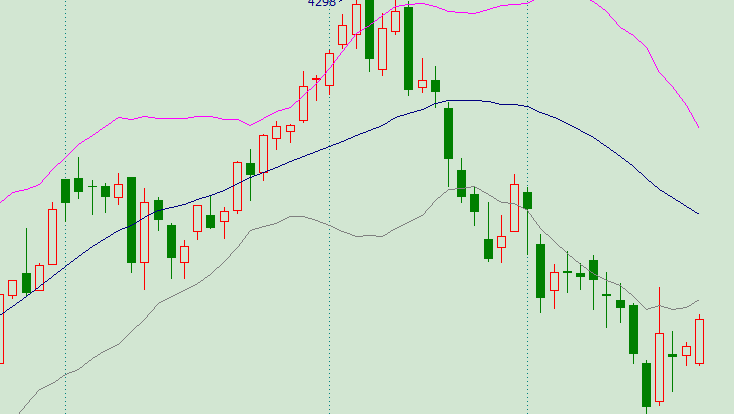 就是K线图和BOLL线之间的关系竟然不固定啊,放大缩小图表,K线竟然在BOLL上下乱跑的