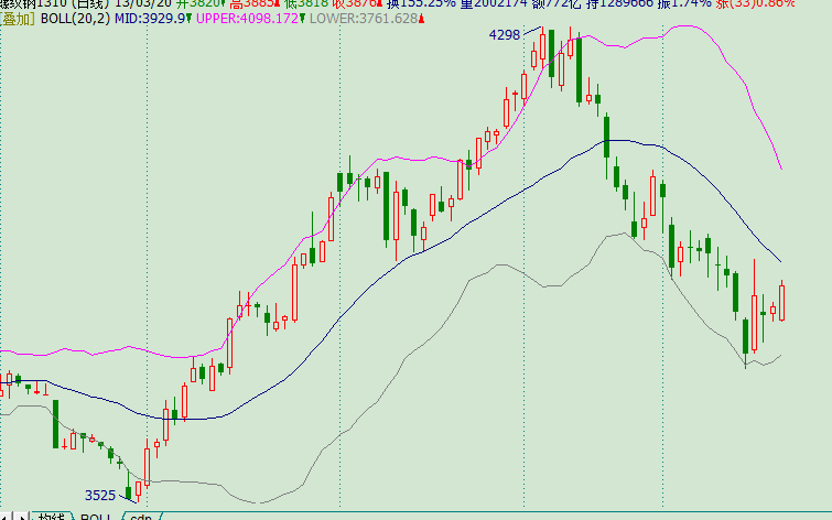 看一下,这两张图。就是同样一个K线图放大缩小后的表现。价格明显和BOLL关系不固定,乱来的说