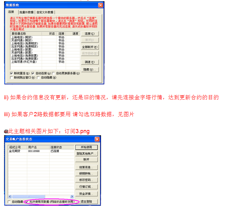 中午有两次断开和登陆(不知道为什么),最后一次是我发现没有了数据然后手动操作的,幸好中间没有交易。不知道问题在哪儿?(我是实盘)