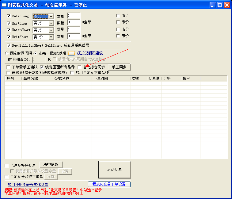 2.如果需要,使用自动持仓同步功能,勾选之后务必查看提示信息,