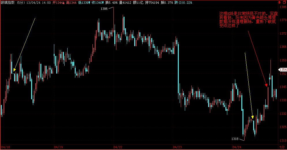 老机器下载的数据(电信宽带)与最新机器的(8G内存,三代I7,WIN8系统)下载数据(网通光纤),不同的网络提供商提供的数据都是一样的。都出现同样K线数据短缺现象。